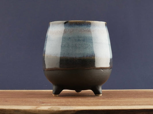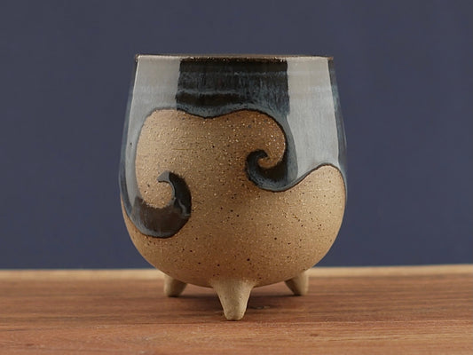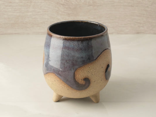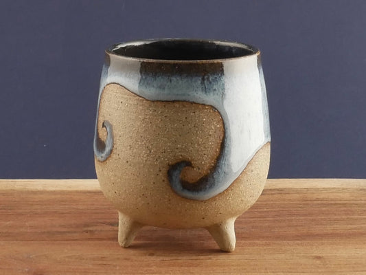 Handmade Tripod Pottery Cup - Ocean Wave (Light Blue)