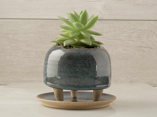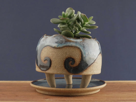 Handmade Pottery Planter - Ocean Wave (Light Blue)