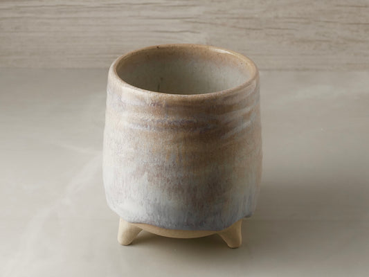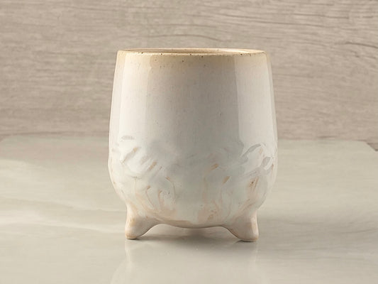 Handmade Tripod Pottery Cup - RoseWhite Texture