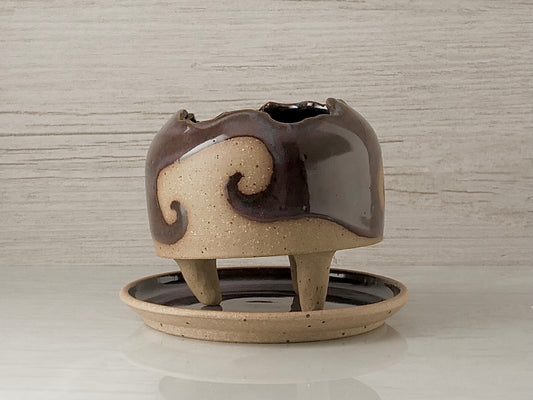 Handmade Pottery Planter - Ocean Wave (Purple)